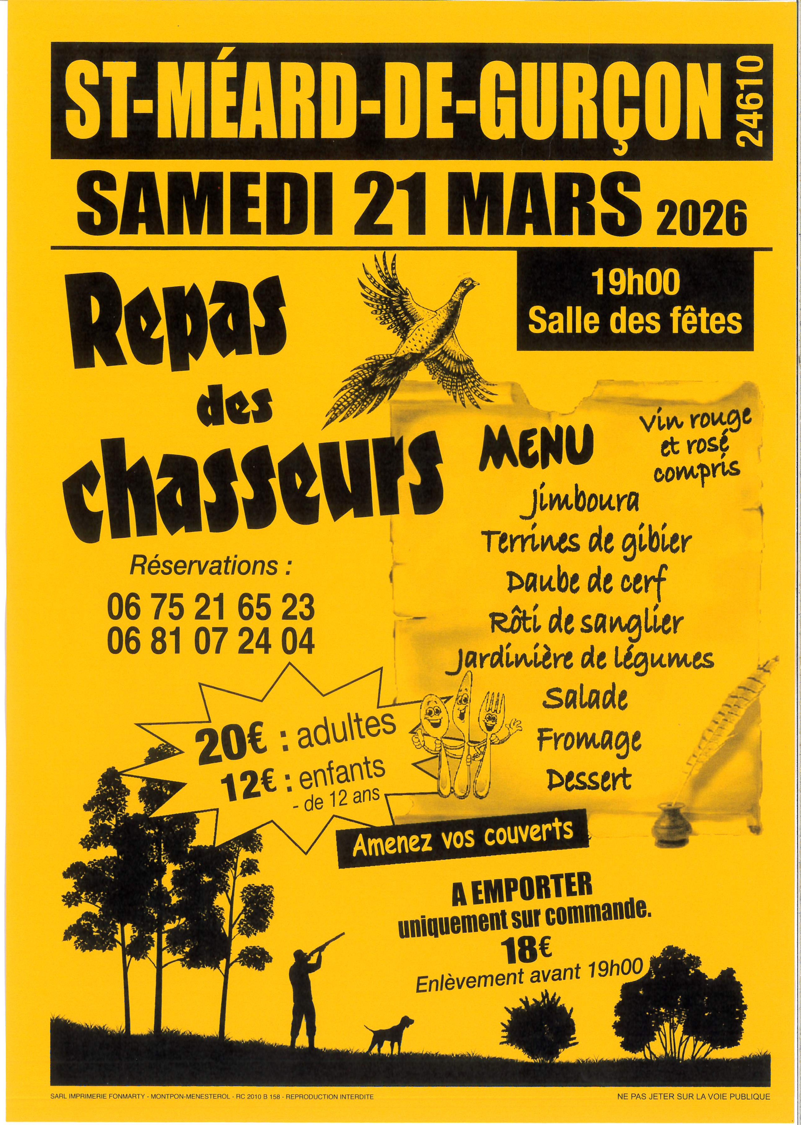 * 21 Mars : Repas des Chasseurs